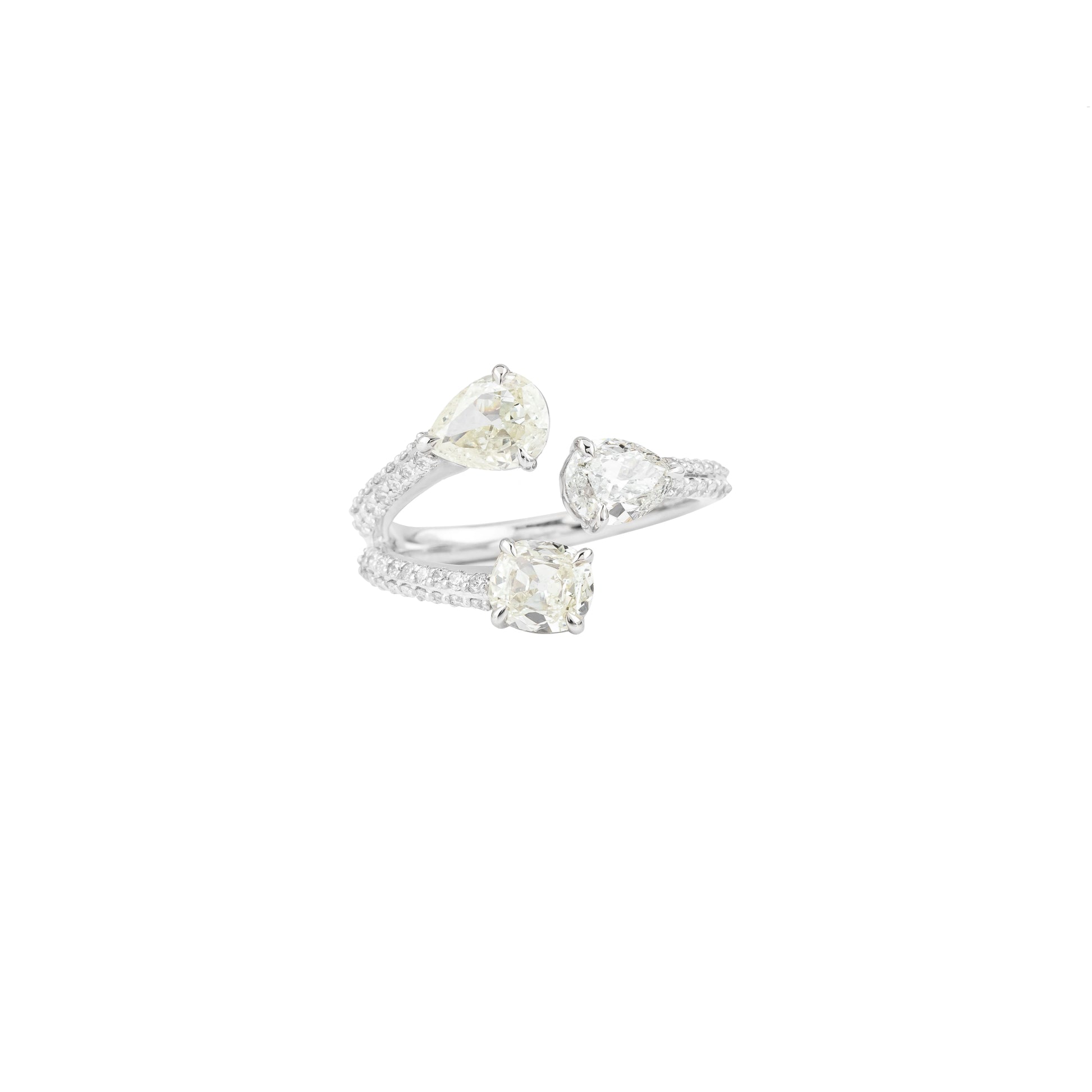 Diamond Ring Tree Cut 18k White Gold 1.95 ct