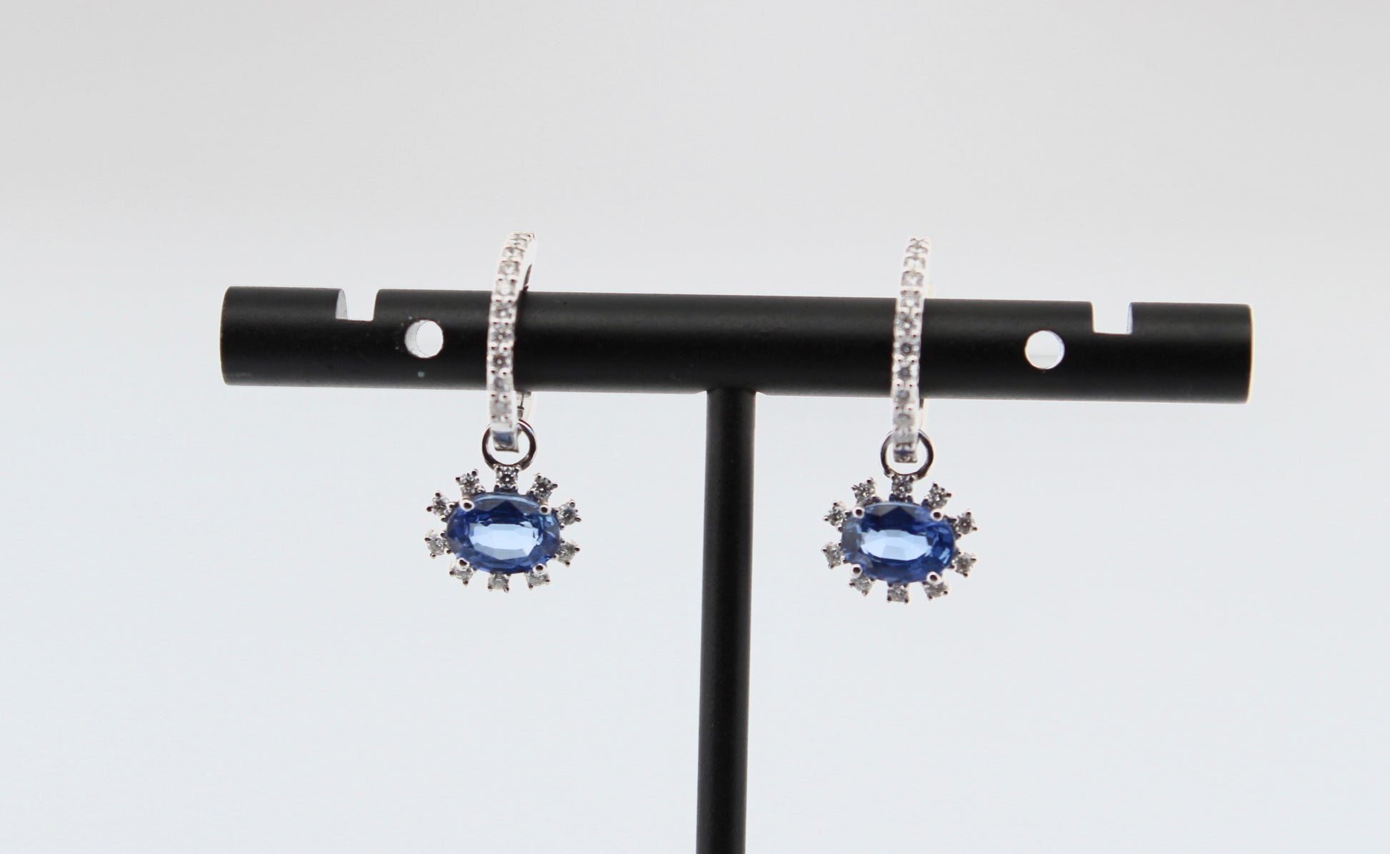 Earring Blue Sapphire and Diamond 18k White Gold 1.7 ct