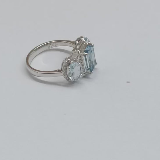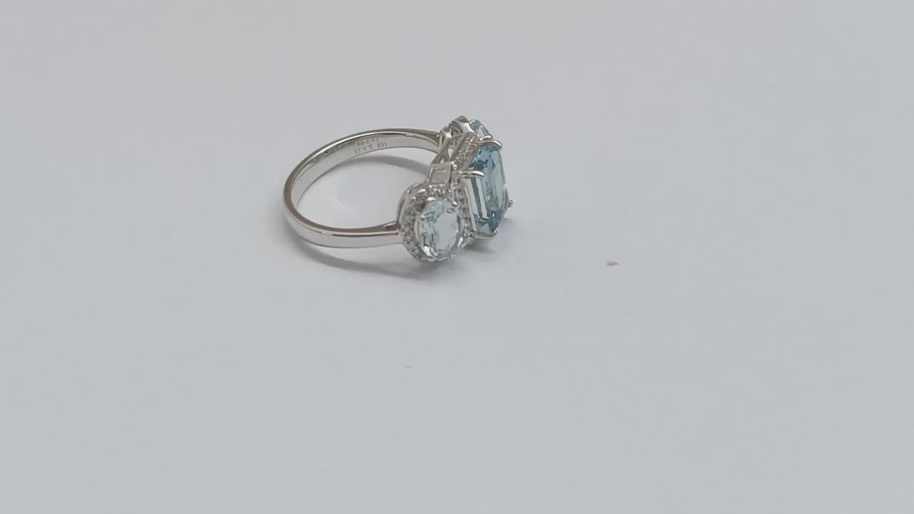 Ring Aquamarine and Diamond 18k White Gold 3.3 ct